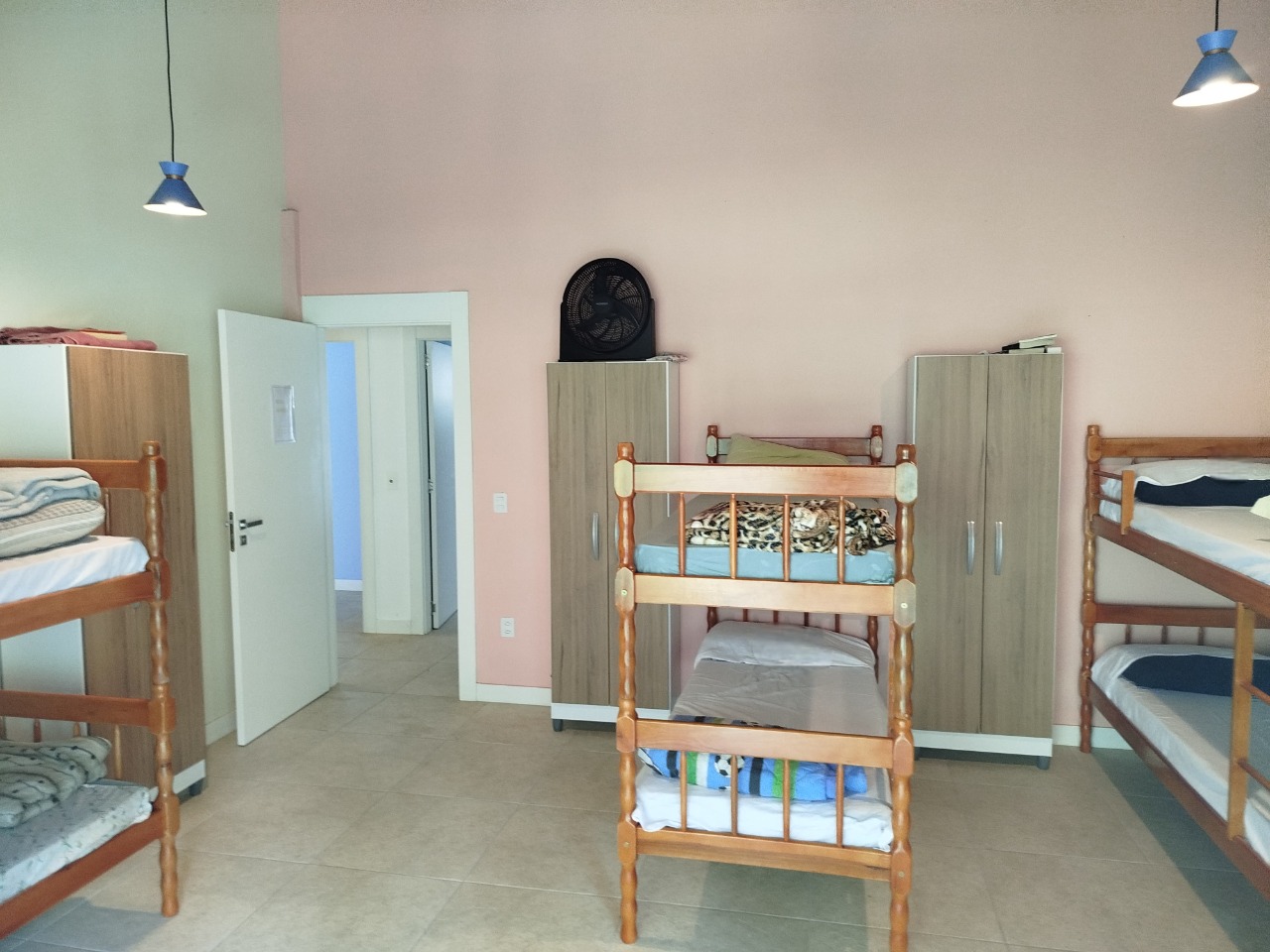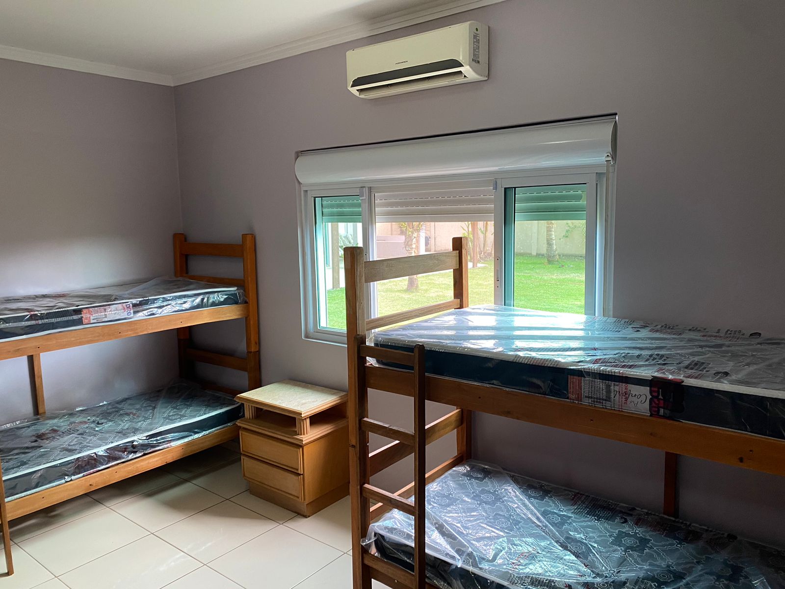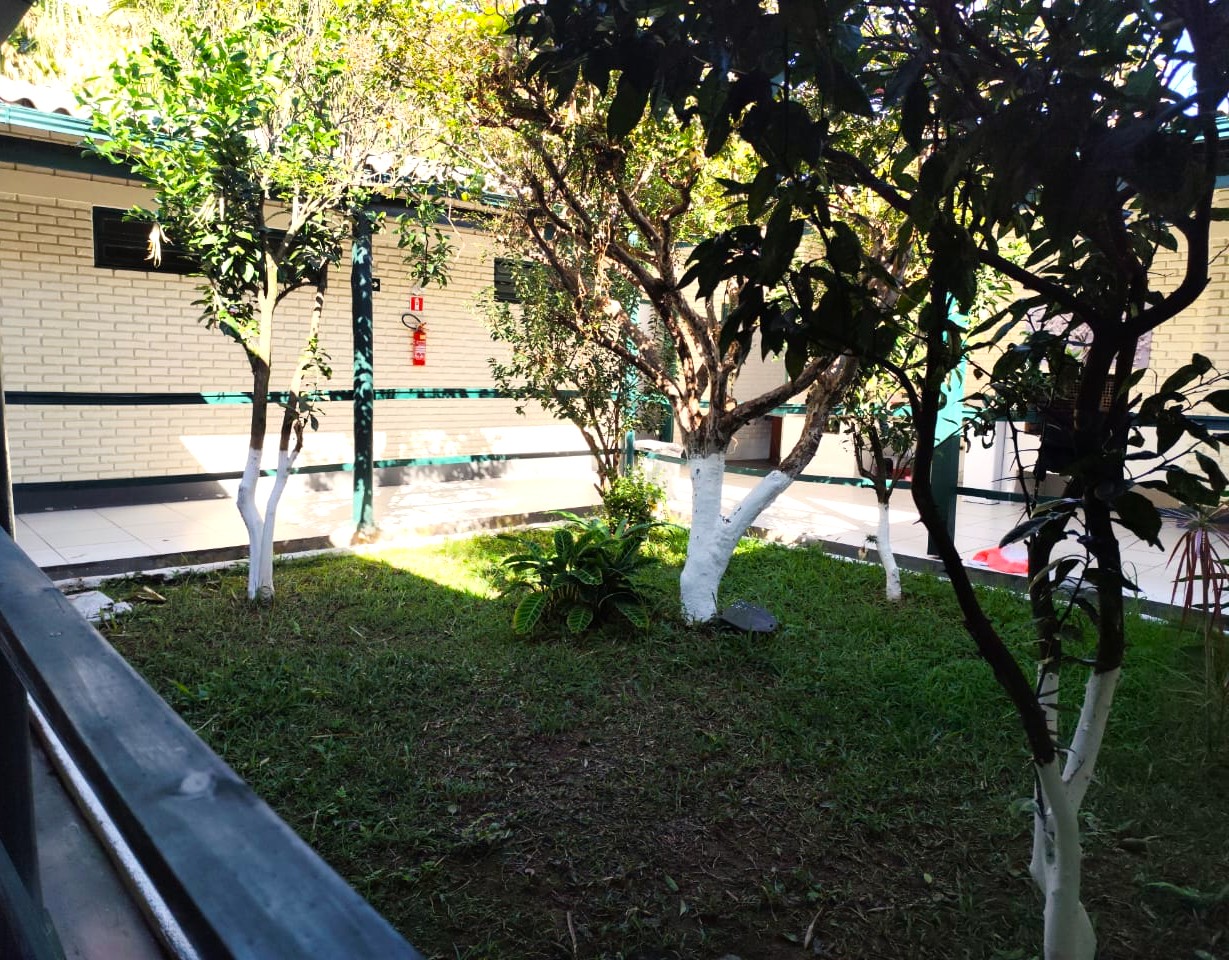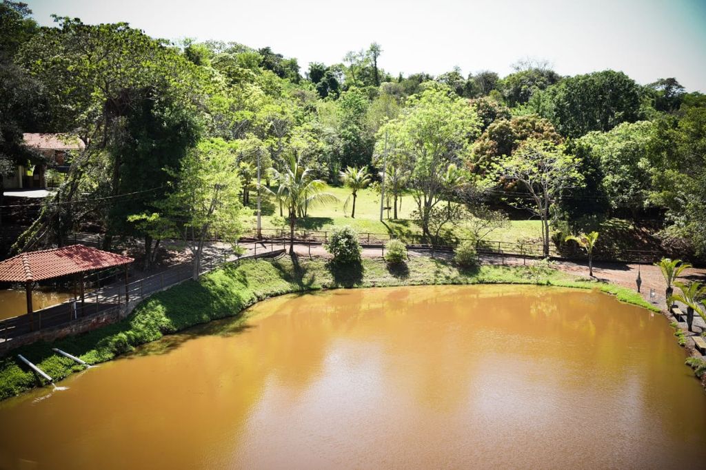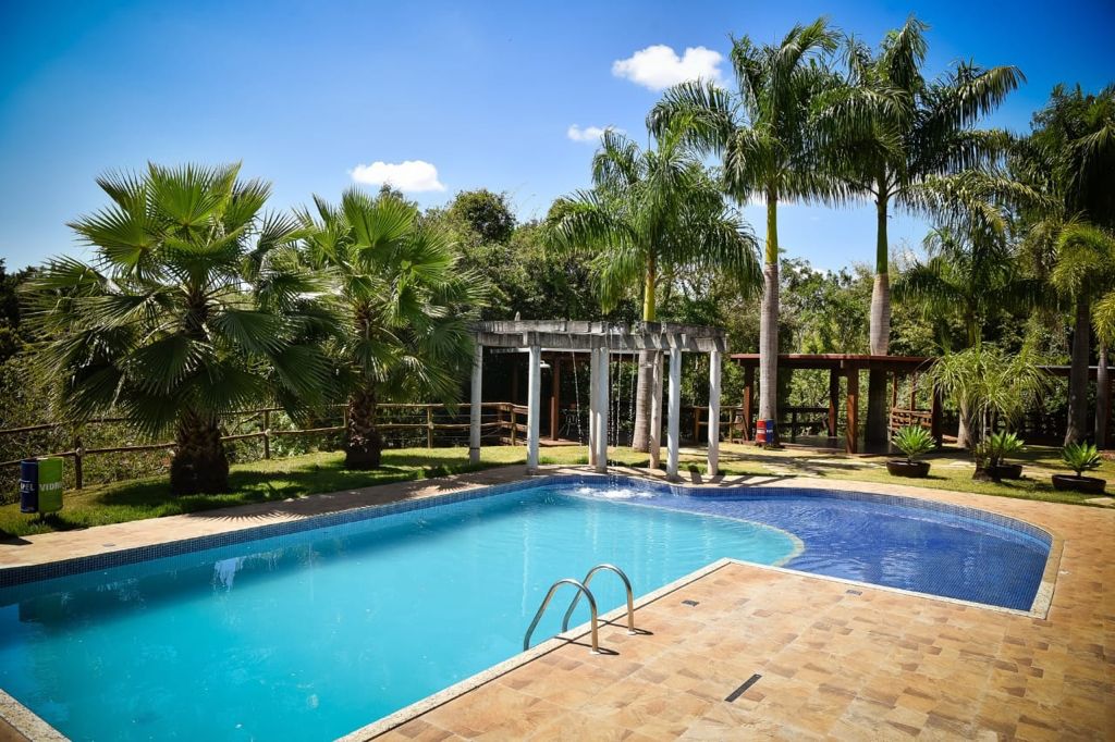 Ambientes equipados com piscina, academia, campo e quadra para esportes, refeitório, além de uma área ampla.