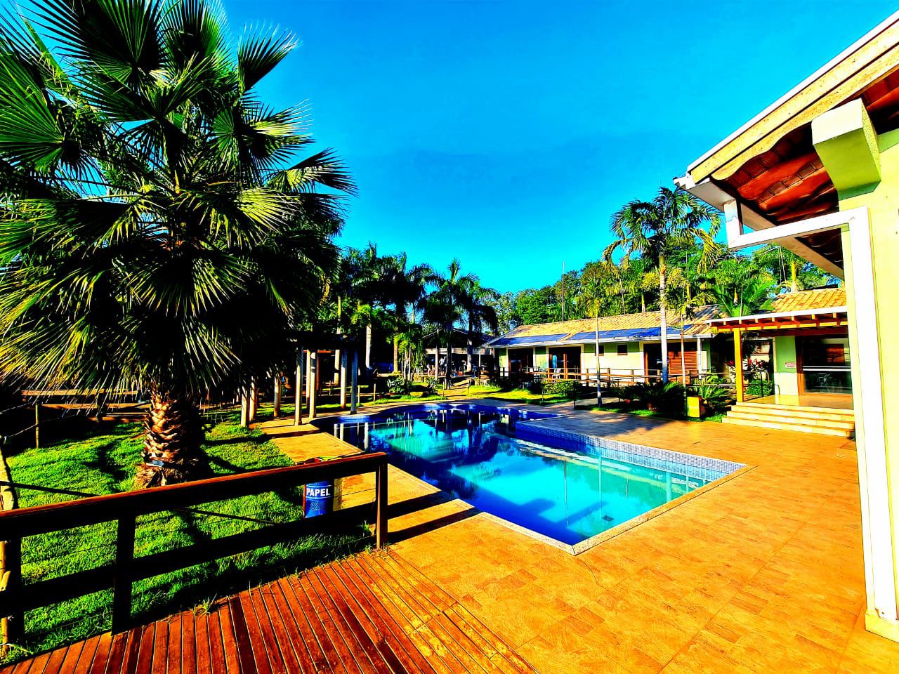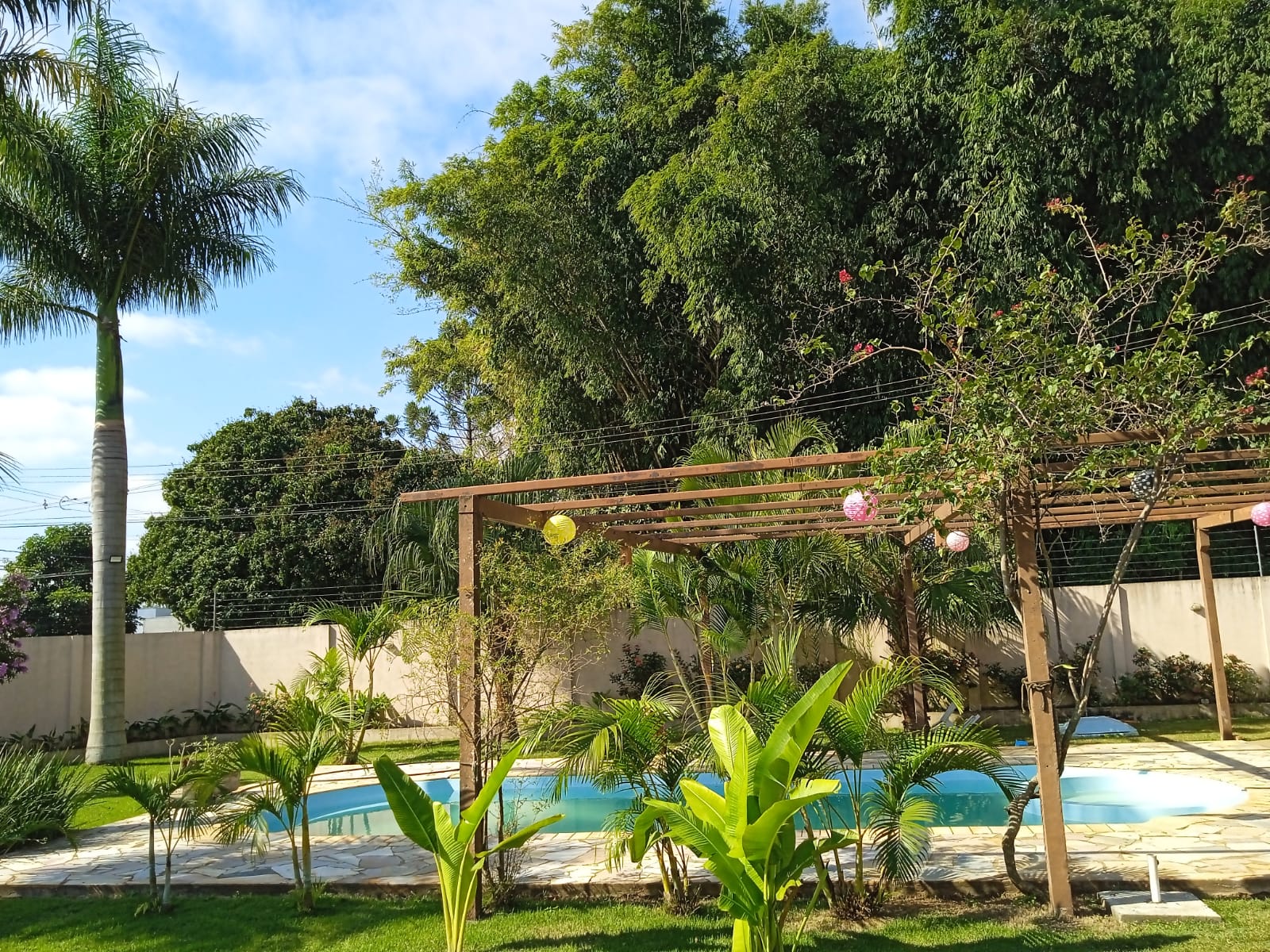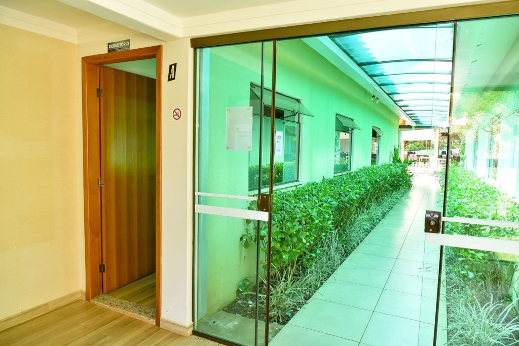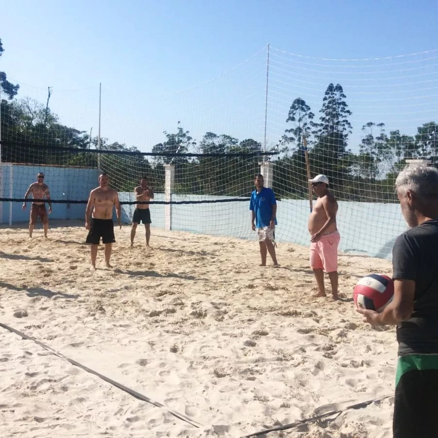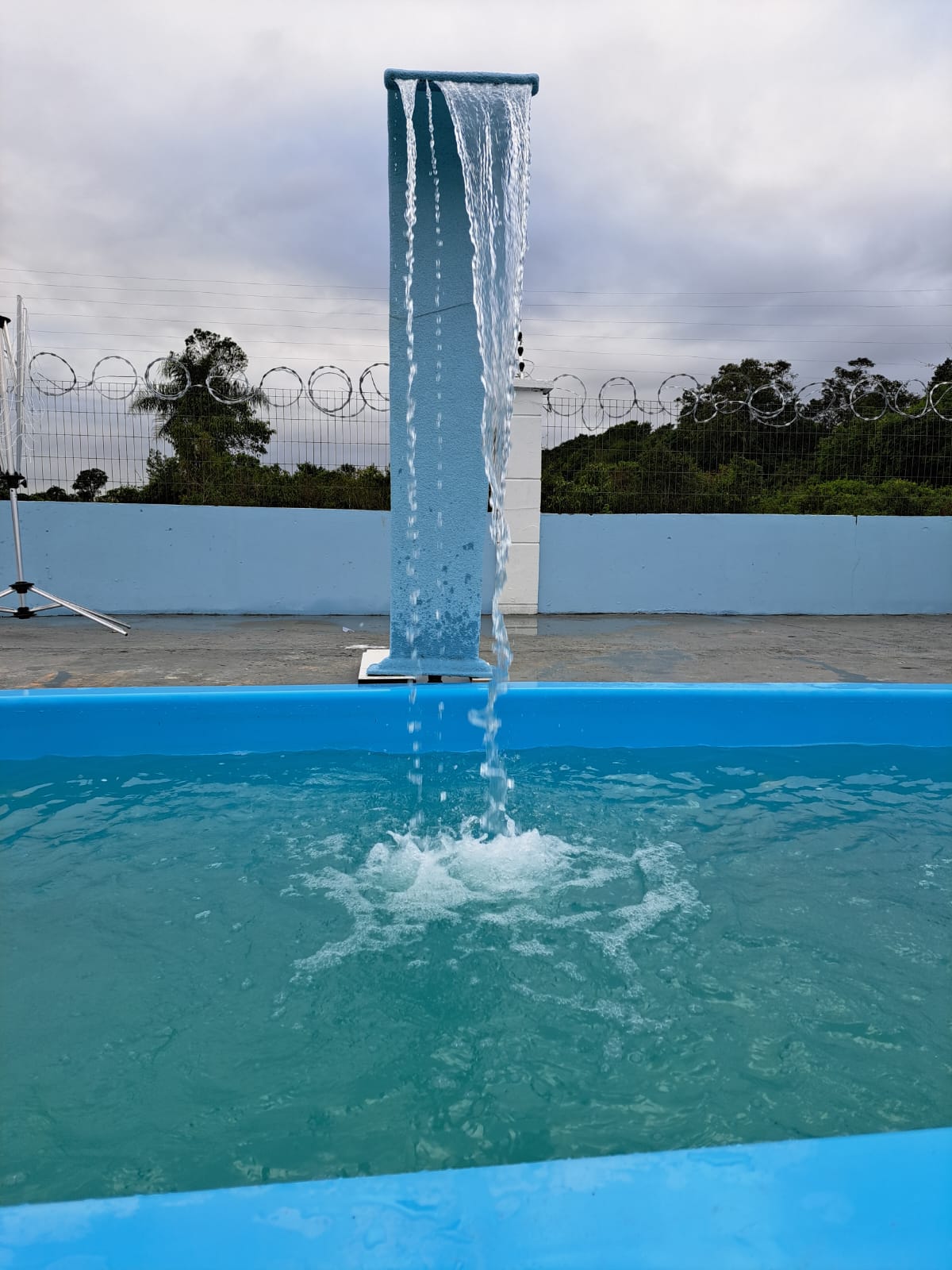 Ambientes equipados com piscina, academia, campo e quadra para esportes, refeitório, além de uma área ampla.