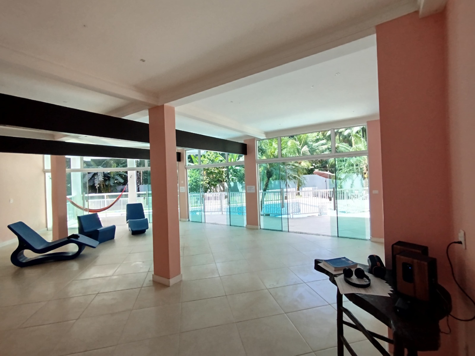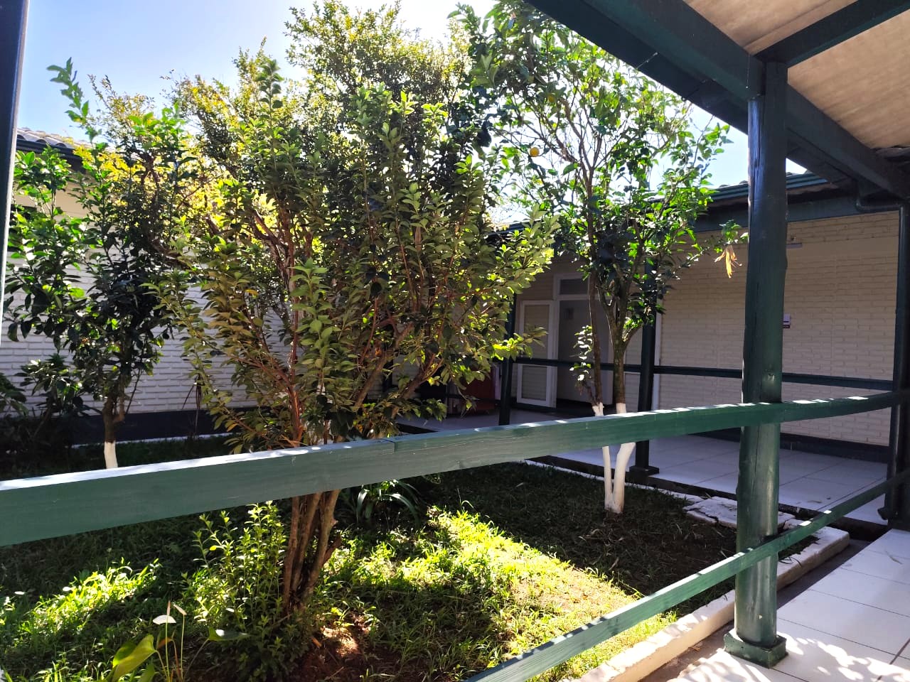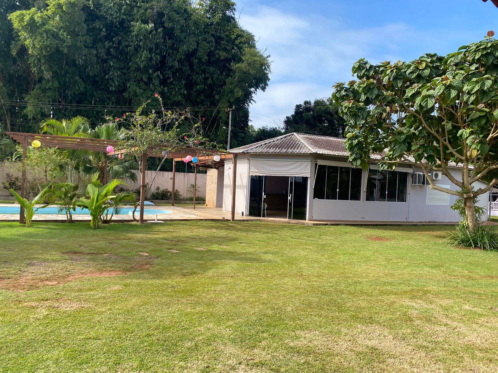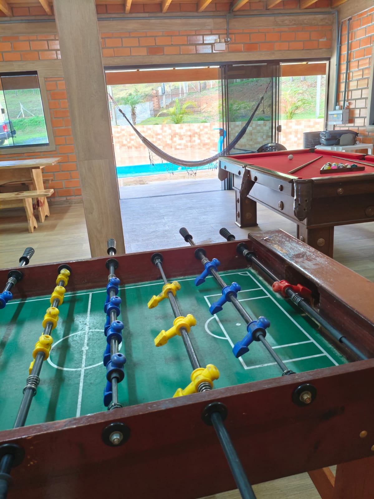 Ambientes equipados com piscina, academia, campo e quadra para esportes, refeitório, além de uma área ampla.