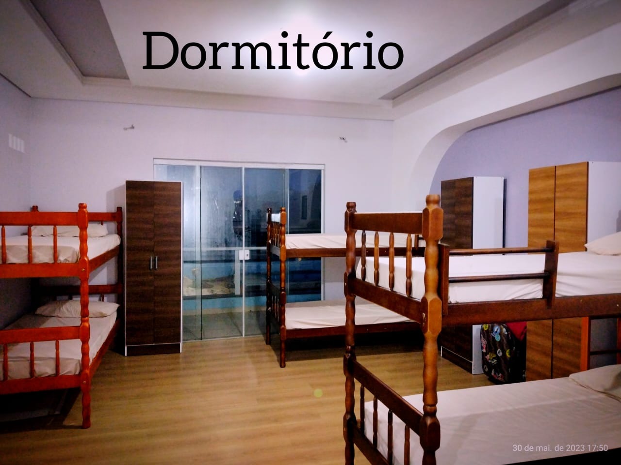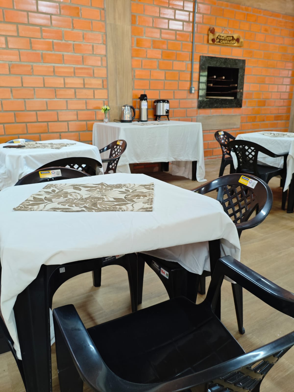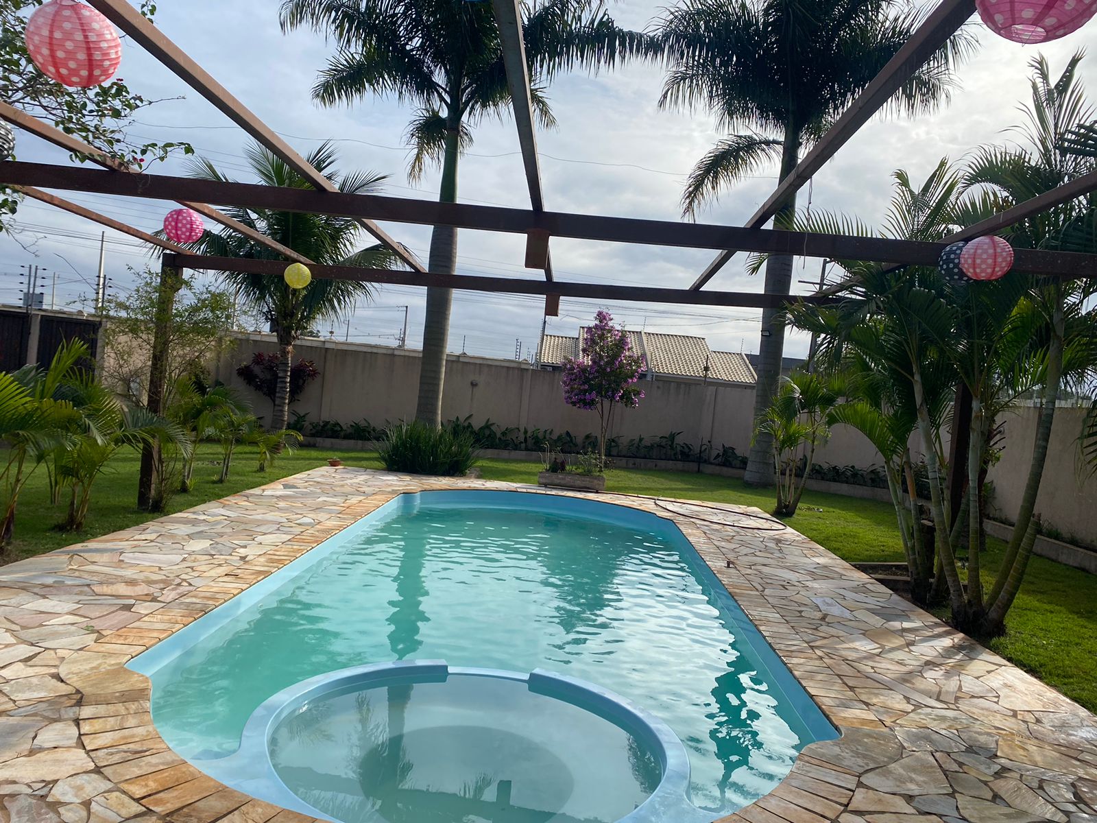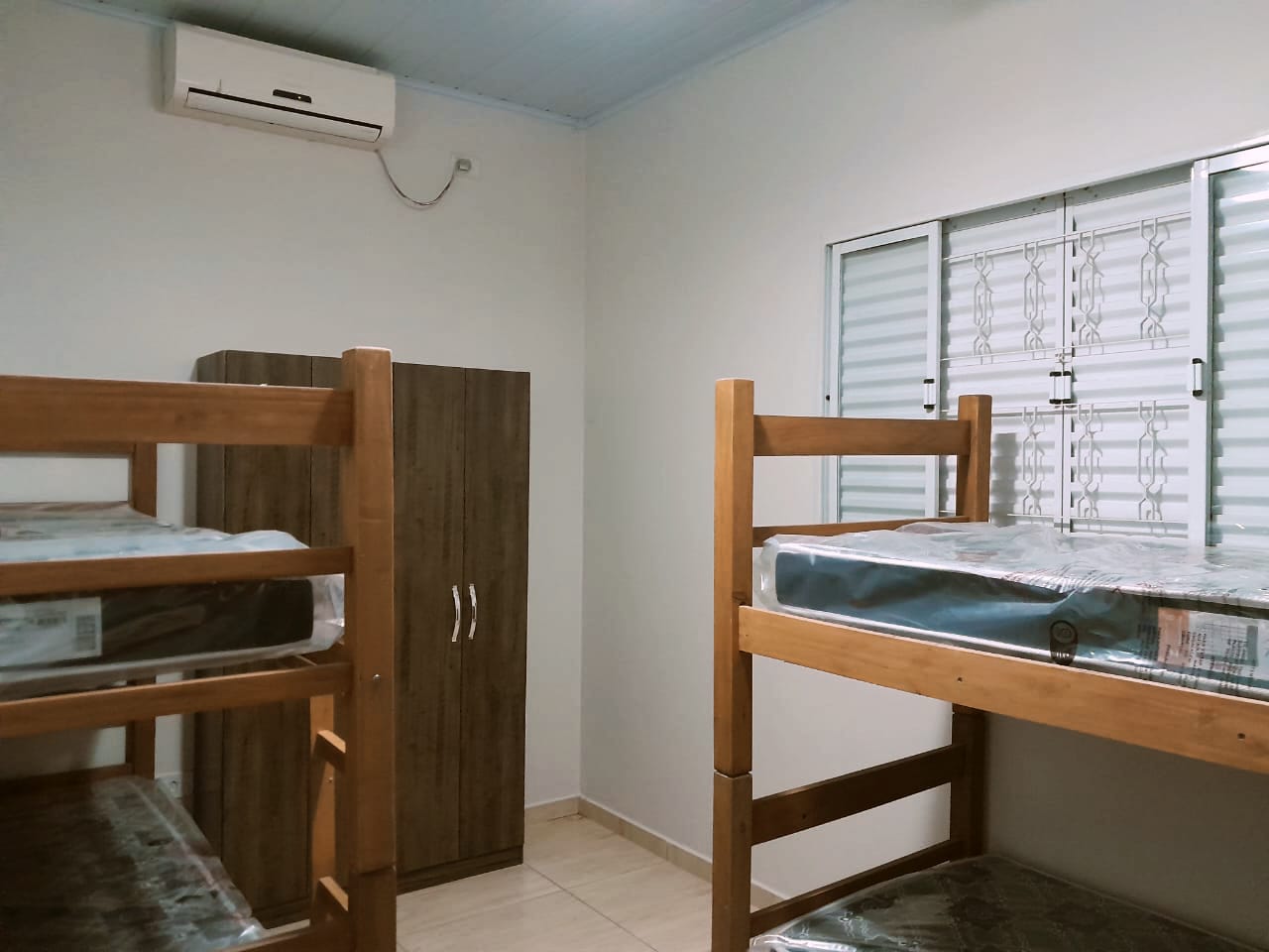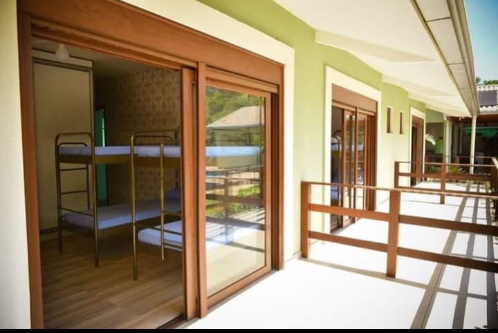 Ambientes equipados com piscina, academia, campo e quadra para esportes, refeitório, além de uma área ampla.
